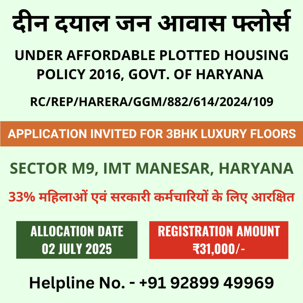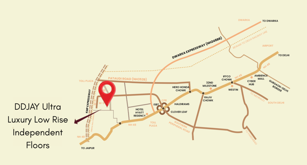 DDJAY Ultra Luxury Low Rise Independent Floors offers spacious 3 BHK fully furnished luxury floors in the thriving locale of IMT Manesar. Developed under the Deen Dayal Jan Awas Yojna, this project is perfectly crafted for families looking for space, comfort, and an elevated lifestyle in one of the high-tech premium regions of Gurugram, popularly known as New Gurugram.